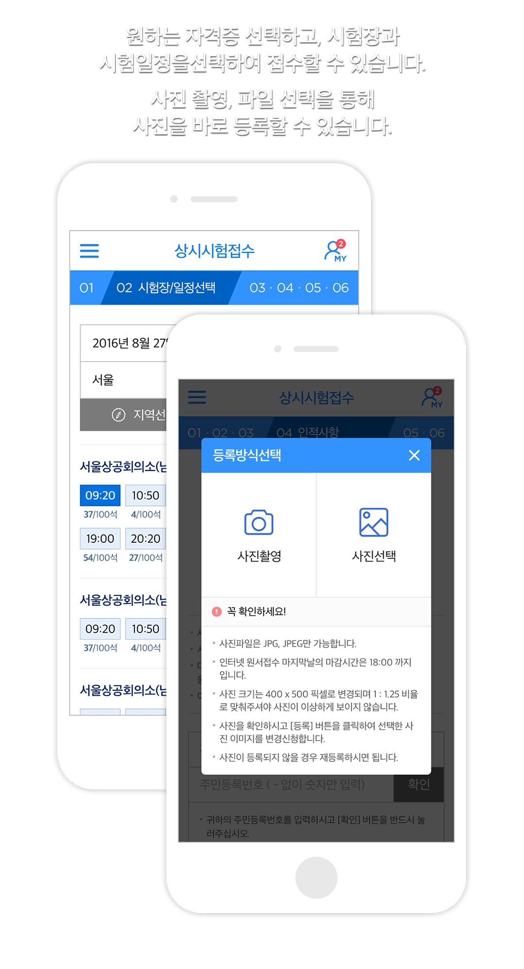 사진 촬영, 파일 선택을 통해 사진을 바로 등록할 수 있습니다.